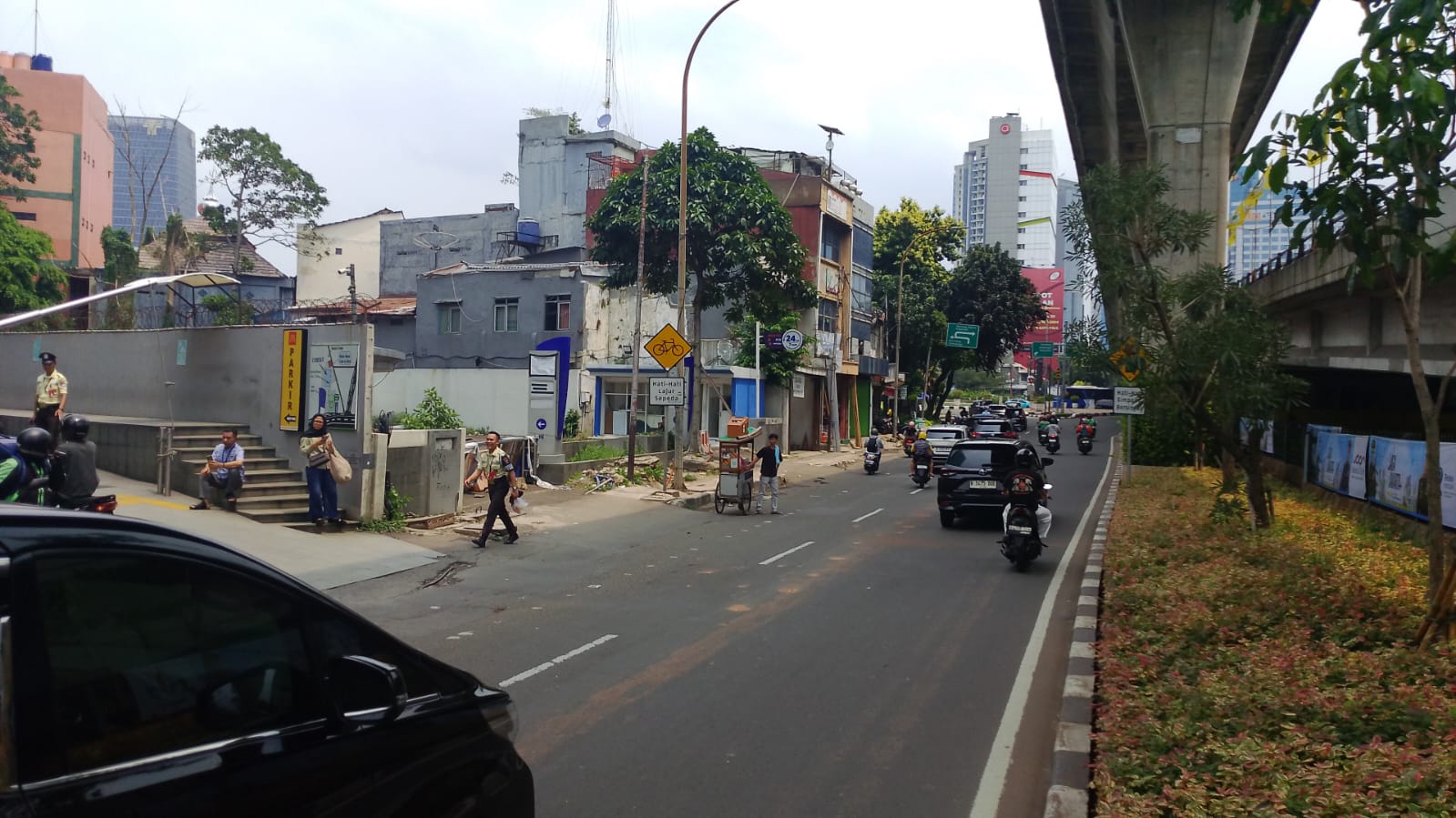 Karena ini salah satu koridor bisnis paling “hidup” di Jakarta Selatan. Akses tol dekat, kedutaan besar berjejer, dan traffic bisnis jalan terus—siang sampai malam.